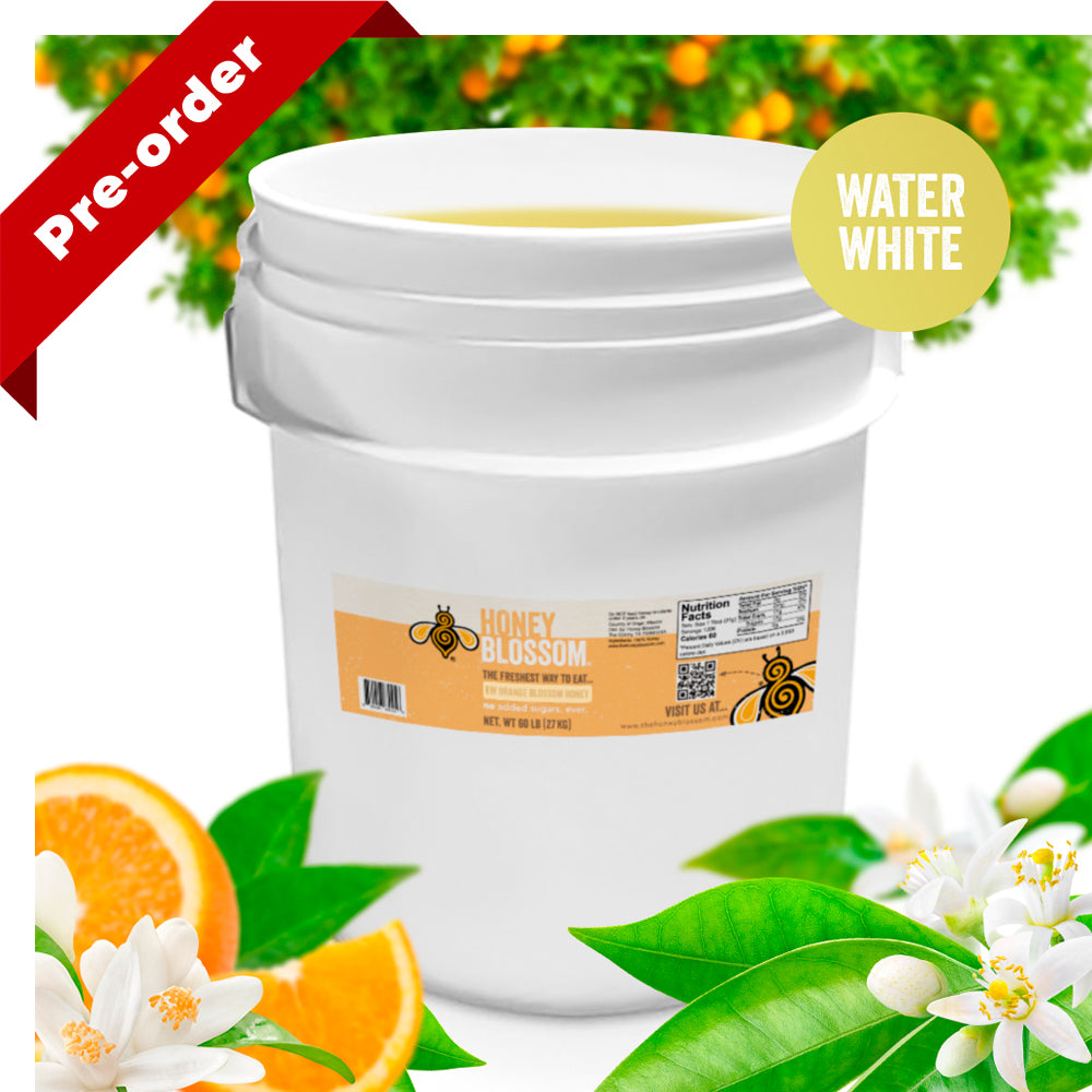 Because it is raw and naturally composed, Water White Orange Blossom Honey will crystallize over time. When it does, it typically develops fine, smooth crystals that preserve both flavor and usability. Crystallization is not a defect, it is one of the clearest signs that the honey remains raw and unadulterated. To return it to a liquid state, place the container in warm water at 100 °F (38 °C) and stir gently. This preserves its natural enzymes, aroma, and floral character without heat damage.